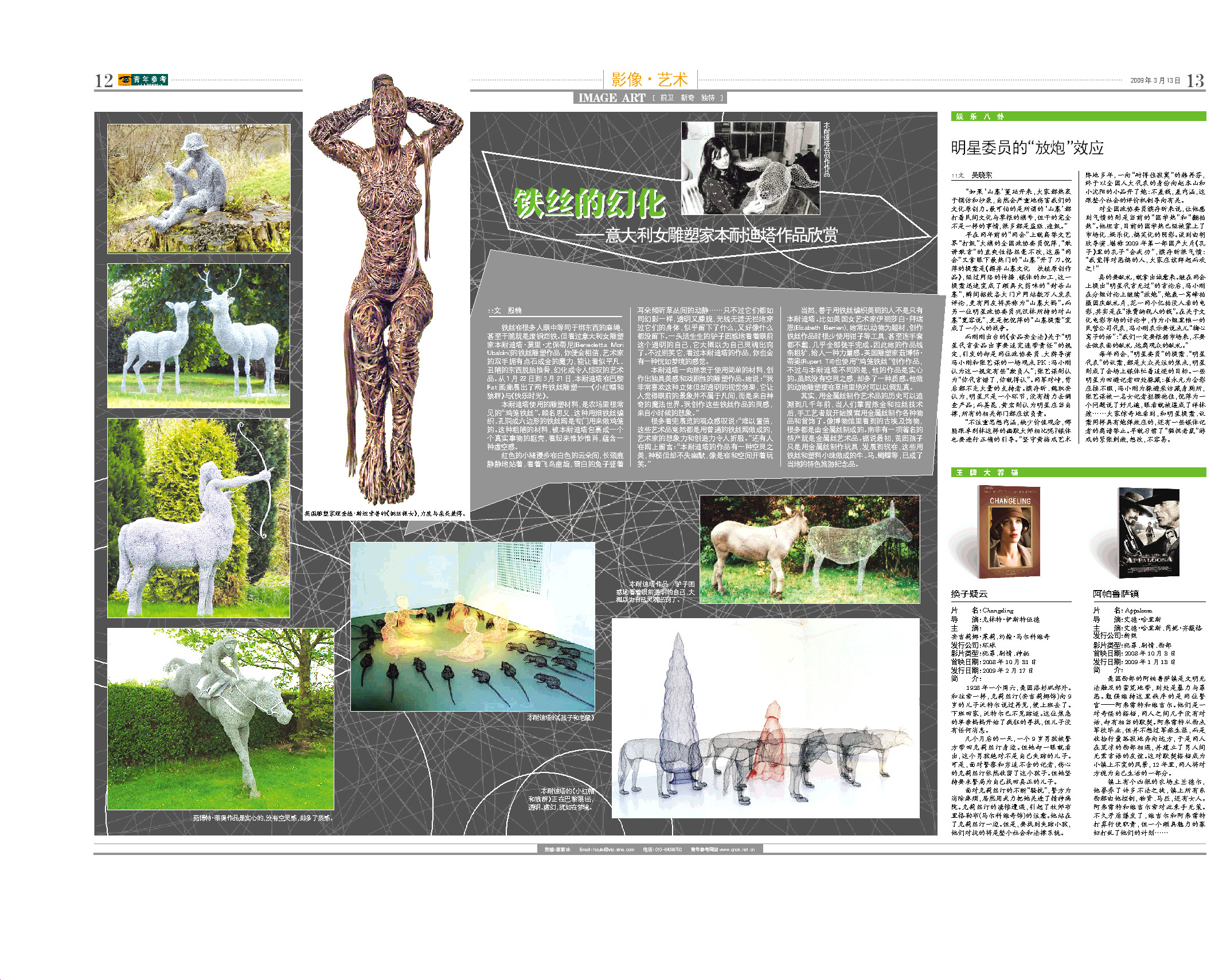 本耐迪塔一向热衷于使用简单的材料,创作出独具美感和戏剧性的雕塑作品。她说:“我非常喜欢这种立体但却透明的视觉效果,它让人觉得眼前的景象并不属于凡间,而是来自神奇的魔法世界。我创作这些铁丝作品的灵感,来自小时候的想象。”
