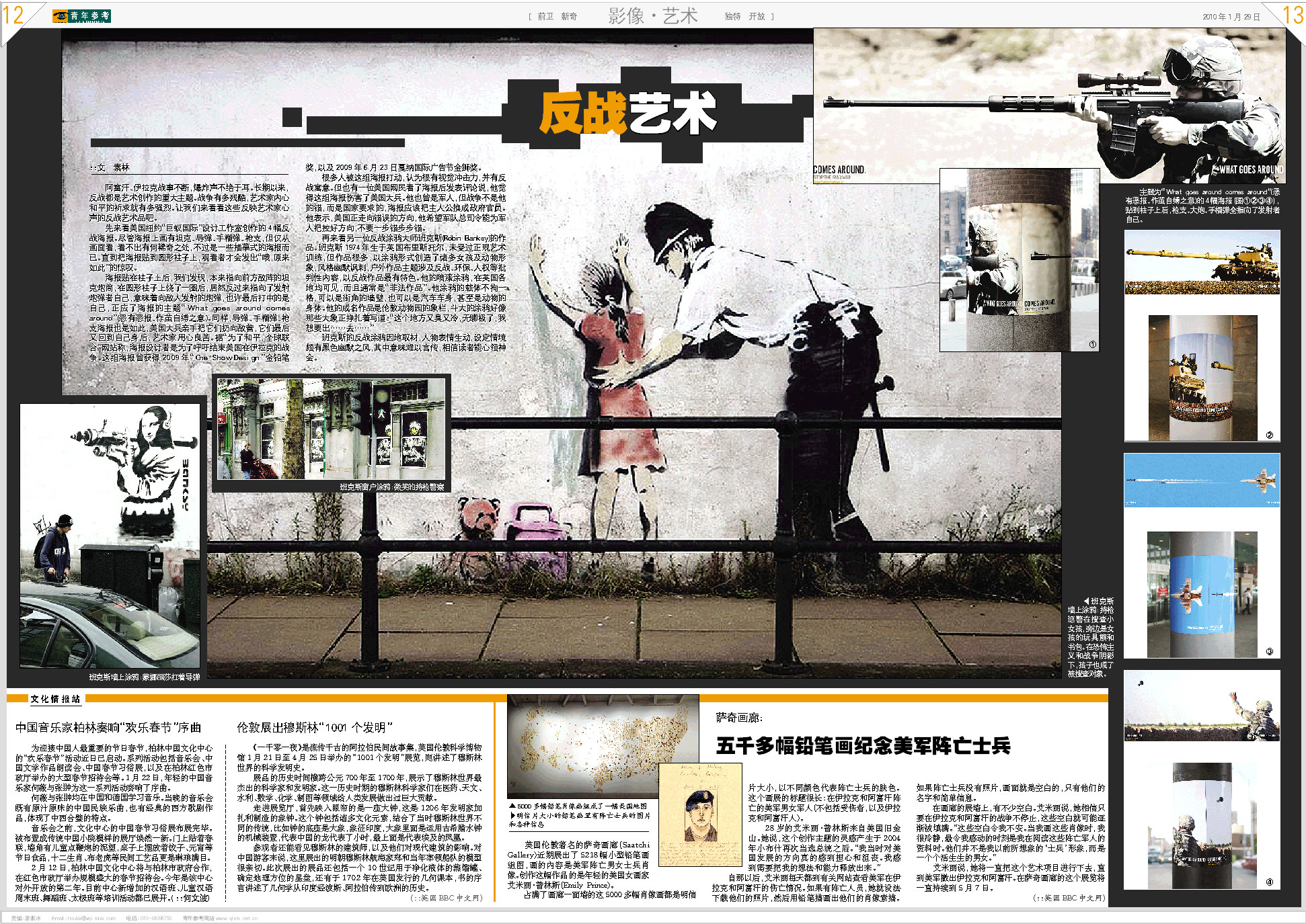 阿富汗、伊拉克战事不断,爆炸声不绝于耳。长期以来,反战都是艺术创作的重大主题。战争有多残酷,艺术家内心和平的祈求就有多强烈。让我们来看看这些反映艺术家心声的反战艺术品吧。