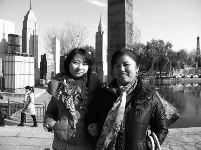 小周今年十八九岁,和妈妈挽着手在“曼哈顿岛”面前合影。“曼哈顿岛”是一小块在池塘中圈起来的水泥地,上面筑着一些约三五米高的身在纽约的摩天大楼。