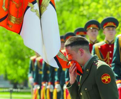 生离 2011年5月12日,一名即将退伍的俄罗斯士兵在莫斯科无名烈士纪念碑前,亲吻军旗,告别军营生活。离开军营的俄罗斯士兵,面临着越来越困难的就业局面。 |