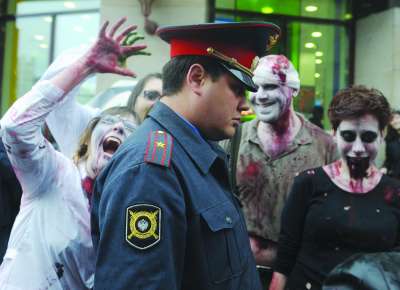 淡定哥 5月15日黄昏,大批“僵尸”入侵莫斯科,阿尔巴特大街上“鬼影”重重。虽然身边尽是龇牙咧嘴的“妖孽”,但值勤的莫斯科警察小哥从容淡定。这是俄罗斯的第四届“僵尸”大巡游活动,重口味的“僵尸”控们纷纷装扮起来吓人。不过对于警察老爷,他们可不敢造次。手里有权,腰里有枪,俄罗斯警察被很多人戏称为王法的化身,那可是真正的“鬼见愁”。 |