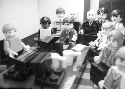 亚历克斯还搭出了美国总统奥巴马和众高官观看海豹突击队行动实时视频的场景。乐高版奥巴马有一头蓬乱的黑发,边上还坐着乐高版副总统、国务卿希拉里等。众人在这段被总统称为“有生以来最长40分钟”的重要时刻,神情凝重地关注着发生在万里之外的大事件。