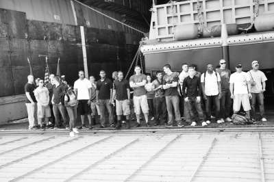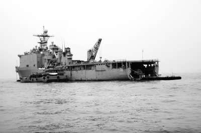 离舰之前,记者与同乘接驳艇的几位陆战队员(图10)闲谈起来。一位身材魁梧的大兵抱怨道,“在船上连脖子都伸不直,要好好到陆地上溜达溜达”;谈及服役期满后的打算,20岁出头的他们或打算继续留在部队,或打算进入大学深造;最后问起上岸之后如何打算,这些稚气未脱的年轻军人笑着说:“没地图也没计划,走到哪儿算哪,哪儿热闹去哪呗。”