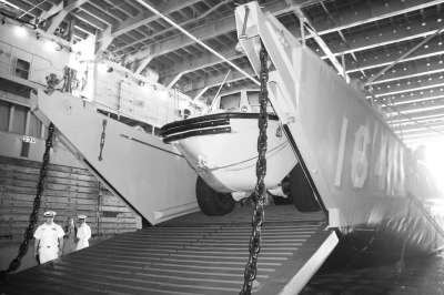 据了解,该舰主要用于两栖登陆,为此配备了4艘气垫登陆艇(LCAC)或3艘通用登陆艇(LCU,图4),可以一次性出动多部两栖突击车等机械化作战单位。同时,舰尾配备的航空设施还可保证直升机的起降、补给,确保其持续作战能力,为完成立体化两栖登陆服务。