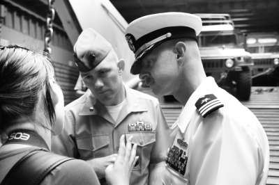 目前,“康斯托克”号上的22名军官、335名水兵以及402名陆战队员处于休假中,在有购物天堂之称的香港尽情放松。或许是注意到舰上约有15%~20%的女性官兵,在随后的记者招待会上,有媒体同行问起在实际操作中是否有男女分工之说。该舰指挥官莱舍尔中校和威利中校(图9)均予以否认。至于两人的假期安排,莱舍尔说:“这是我第三次来香港,上岸走一走、逛一逛就好。”威利则坦承:“太太特地嘱咐我,给她买些珠宝回去。”
