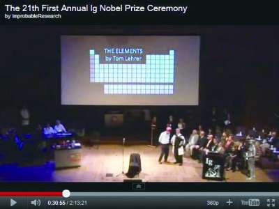 物理学奖被授予菲利普·佩林、赛瑞尔·佩罗特、多米尼克·戴维特尔纳、布鲁诺·拉加鲁及赫尔曼·金玛,以奖励其有关“为何铁饼运动员会头晕而链球运动员不会”的研究。