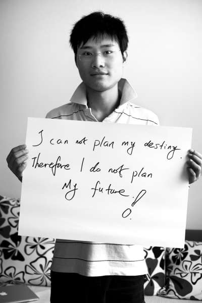 1. 广东,亚历克斯·李,22岁,国际经济贸易专业学生。 “我不能掌握命运,因此也不可能计划将来!” |