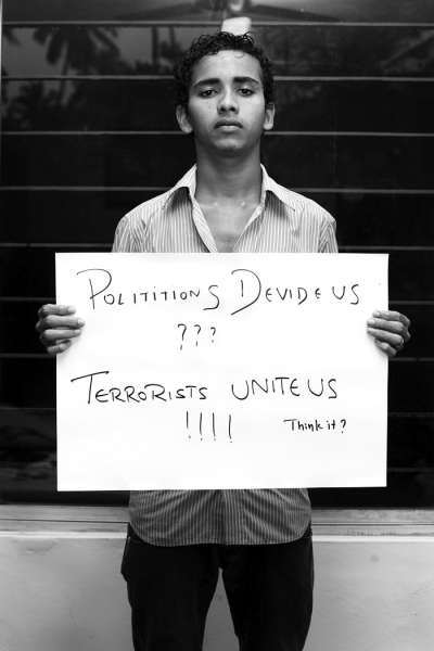 4.Kalandar Nawaz,穆斯林,21岁,来自卡纳塔克邦,学习贸易。 “政治家让我们四分五裂?恐怖分子让我们团结一心!你觉得呢?” |
