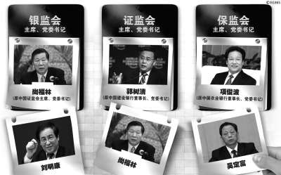 今年10月的最后一个周末,中国三大金融监管机构迎来了中国金融史上最大规模的一次人事变动:原证监会主席尚福林转任银监会主席,原建行董事长郭树清接任证监会主席,原农行董事长项俊波接掌保监会主席印帅。