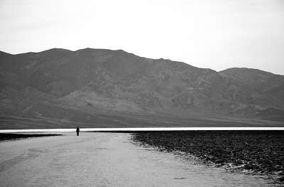 个别地方还残留着少量居民,它们的名称同样带着鬼气,比如“熔炉溪”、“死亡谷交汇点”之类,听起来就有几分不祥。不过,相比“石头自己在沙子上滚动”之类的传说,死亡谷给我的最初印象还是孤独而偏僻,相比之下,遇难水手在茫茫大海上漂泊的那份寂寞也算不得什么。被它千百年来形成的独特氛围所吸引,今年年初,我终于成行,踏着无数野外探险家和灵异现象爱好者的脚步,去加利福尼亚和内华达州交界处的沙漠里“朝圣”。