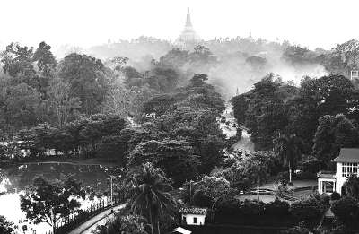 周五下班时间已过,黑沉沉的夜色仿佛吸走了仰光的喧嚣。马路两旁的灯火星星点点、昏黄幽暗,加上一场突如其来的疾风暴雨把行人赶得四散逃窜,街道显得更加落寞。我们乘坐的出租车缓慢而谨慎地绕着一个个水坑转来转去,仿佛一只小虫在长满麻子的脸上爬行。这座深受经济停滞与国际制裁困扰的城市,真让初来乍到的我感到有点无聊。