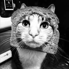 这说起来有点让人难以置信,但遍布世界各地的猫咪爱好者却正是这样做的,他们在面包中间掏出一个洞,再套在猫咪头上,拍照上传,以此来比较谁家的猫咪最具扮相。