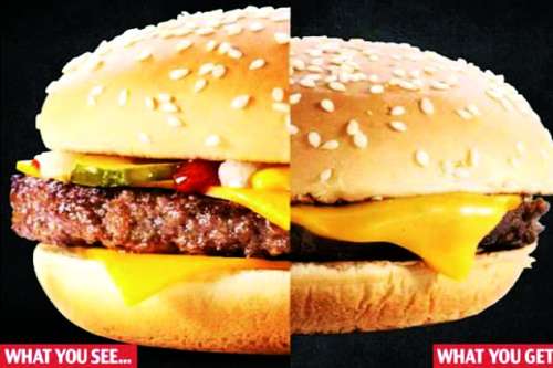 在麦当劳餐厅里,你排了一通长队,终于等来了你的汉堡。但是等等,为什么它看来跟广告图不一样?多得快要掉出来的配菜去哪了?它们简直连体积都不一样!