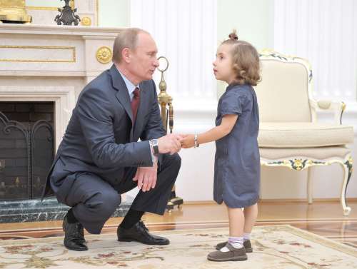 当地时间6月29日,俄罗斯总统普京在莫斯科接见4岁的维拉·斯莫尔尼科娃及其家人。维拉一年前在意大利接受了心脏移植手术。