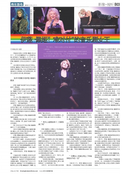 音乐剧对中国观众来说并不陌生,但伊莲·佩姬这个响当当的名字在中国还做不到家喻户晓。不过,听到她的成名曲《回忆》、《阿根廷,别为我哭泣》时,很多人会恍然大悟:哦,原来是她!