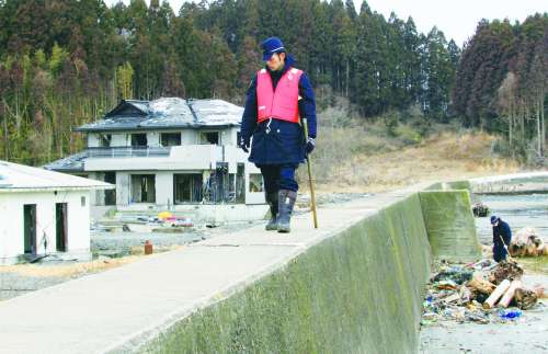 3月11日,宫城县石卷市一名在“3·11”大地震中存活下来的警察,仍持续搜寻着在海啸中失踪的生命。当天是大地震一周年。 |