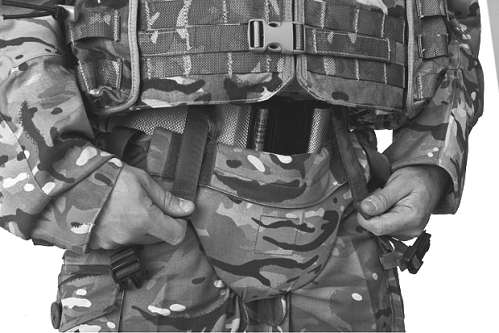 在阿富汗前线,简易爆炸装置(IED)是步兵面临的最大威胁。本装置令士兵们的骨盆、股动脉、下腹部均得到较好保护,可阻挡威力较小的弹片,并防止沙土进入伤口造成感染。