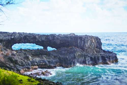 正如书中描述的那样,这个洞穴里盛满了水晶般清冽的泉水,映射着悬伸出来的蕨类植物。我抵抗着寒意,努力游向深处,不一会儿,整个人就完全没入了黑暗中。出发前,我特地带上泳衣和水鞋以防不测;而现在,我意识到,手电作为随身行头也不可少。灯光映射下,两块突出于水面之上的岩石赫然在目——夏威夷土著传说,一位美丽的公主带着侍女,为躲避嫉妒成性的国王逃到这里,眼看走投无路,索性在人迹罕至之处化作了冰冷的雕塑。