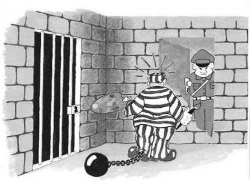 一名身材瘦小的囚犯率先钻过了墙洞,获得了自由。而这名体格壮硕的囚犯却在钻到一半时卡在了里面,进退不得。这让剩下的两名囚犯急得跳脚,他们冲上去,拼命地想把大个儿推出墙洞,让开生路。殊不知,这样的做法只能是让大个儿在墙洞里越卡越紧,最后竟痛苦地尖叫起来。
