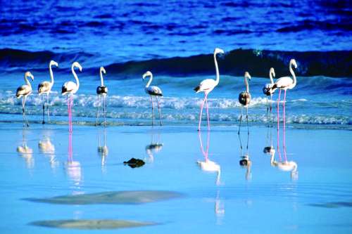 相比接下来的所见所闻,这场意外其实不算什么。勤劳的贝都因妇女、在海边搁浅的单桅帆船、随处可见的尖顶塔楼……一切都让我们兴味盎然。这天的露营更有诗意,是在一个光滑如镜的泻湖旁,我们点上篝火,望着成群的火烈鸟、苍鹭和白鹭从头顶上飞过。