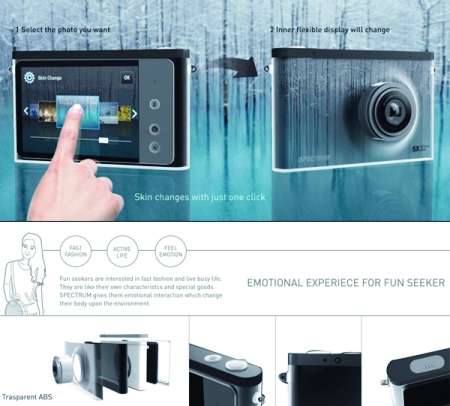 除了宾得,佳能、尼康等相机厂商似乎仍旧热衷于纯黑的外观颜色,不过在这个“科技以换壳为本”的时代,摄影师手中的相机又该如何体现他们的个性与追求呢?为此,设计师提出了一个超前的设计理念,即随意更换外观壁纸的智能相机,相机外层的智能皮肤可随着用户选择图片壁纸的更换而变化,呈现与众不同的主题外观。