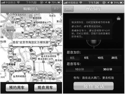一个寒冷的冬夜,在首都国际机场,菲利普·周用智能手机上的一款应用程序,逃过了大排长龙等候出租车之苦。他通过这款应用程序告诉出租车司机,为尽快坐上车愿意加价。