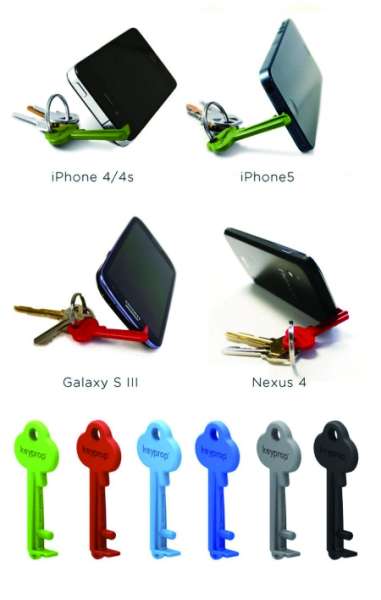 虽然平板电脑支架大受欢迎,可对于侧重便携轻巧的手机用户来说,谁喜欢时刻在兜兜里揣着一个碍事的支架外壳呢?这把小巧精致的钥匙支架巧借手机的耳机插孔(iPhone5用户也可使用数据线接口),为手机提供一个稳固支撑,方便您腾出双手吃饭或干活时又不会错过精彩的电影。