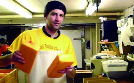 丹尼尔在威斯康星州做奶酪(右图),在俄勒冈州做伐木工人。 |