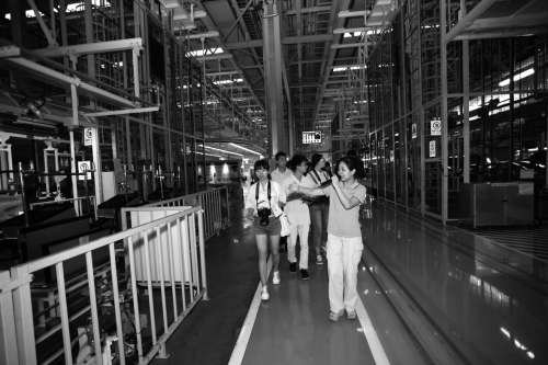 大学生记者团参观二工厂总装线 |