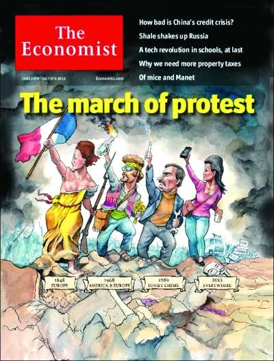 在巴西,人民群起反抗公交车费用上涨;在土耳其,人民反对改建公园;在印尼,民众抗议燃料涨价;在保加利亚,人民反对政府任人唯亲;在欧洲,民众反对经济紧缩计划。