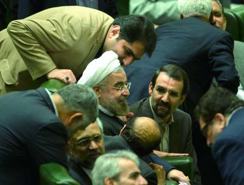 当地时间8月12日,伊朗新任总统鲁哈尼在伊朗议会发表讲话,介绍其提名的内阁部长。这些部长需要在就职前,获得议会多数支持票。鲁哈尼表示,自己所组建的政府将与任何形式的极端主义保持距离,采用一种温和方式,结束伊朗在国际社会上的孤立状态。