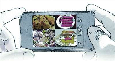 一道美食上桌,正有人准备动筷,突然传来一声呼喝:“等一等,我还没拍照。”