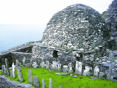 奥沙提到的“那些家伙”,指的是约在公元600至1200年间生活在岛上的一群修道士,他们也是吸引我到访这里的原因。虽然遭受经年累月的风吹雨淋,修道士们当年生活的痕迹仍然清晰可见:竖立在坟墓上的凯尔特十字架;小教堂的遗迹;一座造型粗犷的礼拜堂和几座蜂窝状建筑——相当于简易宿舍,其底部由平板石干砌而成,与圆顶合成整体。它们是理性主义统治西方世界前那个时代的标志,彼时,对神学的狂热信仰是社会主流。