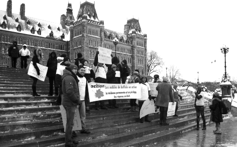 2014年1月,一些示威者集结在位于渥太华的加拿大国会门外,要求国会尽快通过他们的永久居留申请。 |