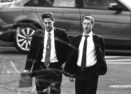 3月21日,美国华盛顿,脸谱网 CEO马克·扎克伯格(右)抵达白宫。总统奥巴马当天会见了扎克伯格等6家科技公司的高管,讨论政府监听项目。 |