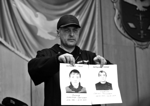 4月21日,亲俄分子在斯拉维扬斯克举行新闻发布会,称身份不明的武装分子枪杀了亲俄武装人员。□图片来源 CFP |