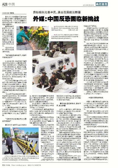 外媒:中国反恐面临新挑战