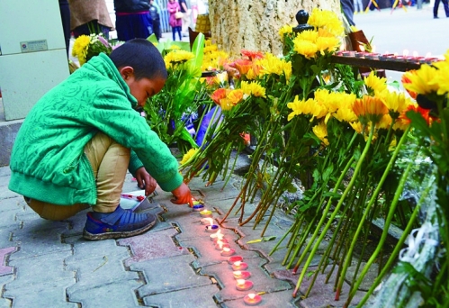 5月23日晚9时,新疆乌鲁木齐沙依巴克区公园北街,市民们自发来到这里,悼念5·22暴恐案中逝去的亲人。 □图片来源 CFP |