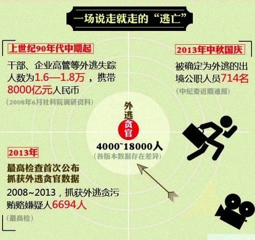 根据中国人民银行3年前发布的消息,从上世纪90年代到2008年,共有约1.8万名党政干部外逃,携带款项高达1230亿美元(约合人民币7533亿元)。