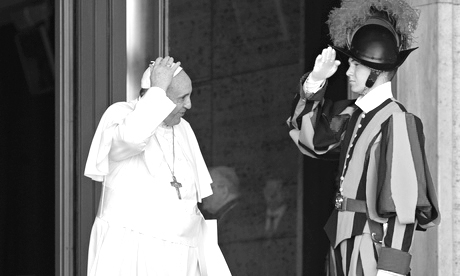 24岁的大卫·盖赛尔于去年2月加入教廷卫队。此前,这个瑞士人是一名大厨,在乡邻间的声望堪比英国“厨神”杰米·奥利弗。从他最新撰写的一本食谱中,人们得以一窥梵蒂冈的饮食文化,方济各大概也能找到适合自己口味的佳肴:胡椒沙拉配南美肉馅卷饼,Colita de cuadril(教皇老家的一道牛肉菜)以及令人欲罢不能的dulce de leche(牛奶焦糖酱)。