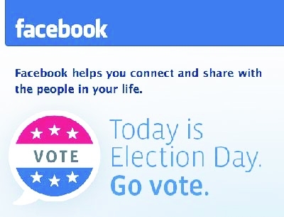 与此同时,脸谱网和推特也针对此次选举做出了相应的改变。从11月4日起,脸谱网在所有美国用户的动态信息页面顶部增加了一个按钮,提醒用户进行投票,并要求已投票的用户将自己的投票信息分享给朋友。这条信息上写着:“我是选民!”——脸谱网将其称为“扩音器”,主要作用是从常规的信息流中突出选举的重要地位。用户点击该按钮后,会跳转到新的页面,展示用户选区分布情况。