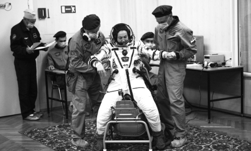 32公里之外,大卫和苏珊·多伊格夫妇却只能挤在拜科努尔镇的酒店阳台上,费力地观看火箭起飞。从澳大利亚到达这里后,他们才了解到,掌管发射场的俄罗斯联邦航天局不允许“散客”,与记者、工程师、宇航员亲属以及梅尔尼科夫等贵宾一起观看发射盛况。