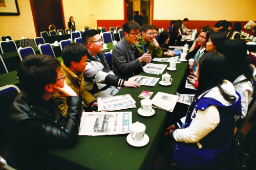 高校国际交流社团负责人走进央企,来到中国交通建设集团总部。这是学生向该集团负责人提问。本版图片 王伟伟摄