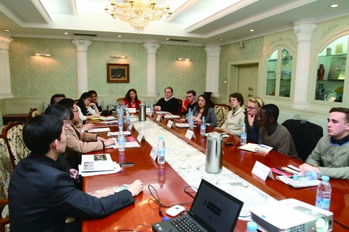 2014年12月30日,美国常春藤联盟理事会代表团一行10人访问中国青年报社。季彬摄 |