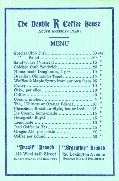 事实上,“巴西咖啡屋”当时确实碰到了麻烦——由于店长萨拉萨尔另起炉灶,咖啡馆的姓名权陷入纠纷。为免于诉讼之苦,罗斯福家族将咖啡馆更名为“双R咖啡屋”,新名字中的两个R象征着两大股东——罗斯福家族,还有“老罗”的侄子梦露·道格拉斯·罗宾逊。