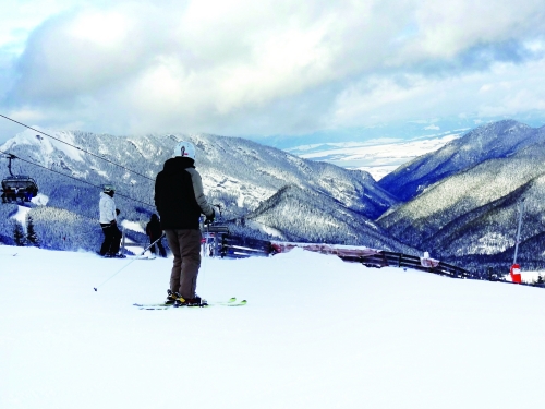 夜幕降临,车渐渐驶入曲折的山区道路,明显感觉气温较平原地区低了不少,车道两旁开始看到积雪。路上的车也多了起来,大部分车顶都架着滑雪板,颇有男女老少举家出动上山滑雪的味道。走走停停,爬了不知多少个坡之后,道路忽然开阔了,已经可以借着夜幕下的灯光看到雪道,已经昏昏欲睡的同学们顿时来了精神。