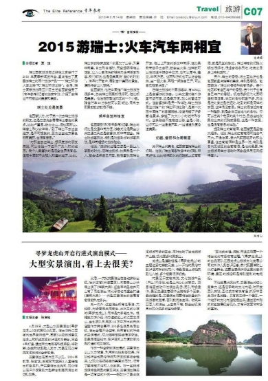 瑞士国家旅游局近期在北京举行了2015 年夏季新闻发布会,重点推出了夏季游瑞士的两个旅游产品——“瑞士环游火车之路”和“瑞士环游之路”。会后,瑞士国家旅游局亚洲区主任包西蒙接受了《青年参考》记者的独家专访,介绍了去瑞士不可错过的美景和美食。