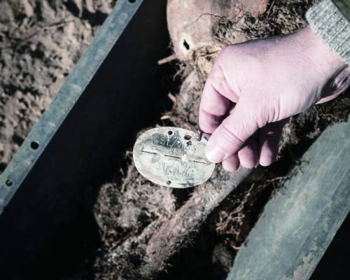 写有士兵信息的“狗牌”能帮助确认遗骸身份。但盗墓者往往会抢先“光顾”,将这些物品洗劫一空。 |