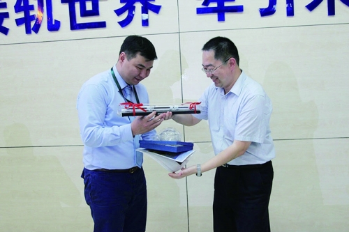 蒙古青年代表和北方机车车辆工业集团公司互赠礼物。中青网记者 卢冠琼摄 |