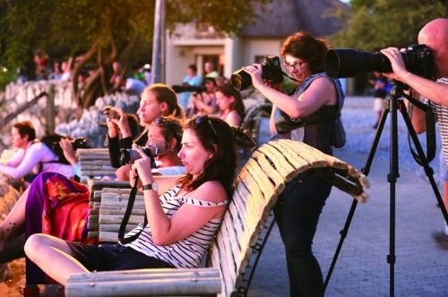 在静谧的环境里,我透过长焦距镜头观测到许多有趣的景象:弱小的食草动物均是小心翼翼、东张西望,一点点靠近水塘,生怕遭到食肉动物的偷袭;而像斑马、长颈鹿、羚羊等体型较大却温文而雅的动物,则讲究先来后到,秩序井然……那场面真是奇妙、温馨,甚至有些壮观。听说,当猎豹、大象、狮子等“霸主”同时在此饮水时,常会引发激烈搏斗。虽然我们没遇到这种场景,留下了些许拍摄上的遗憾,但祥和的、没有残杀的一幕却是我们内心期待的美好。